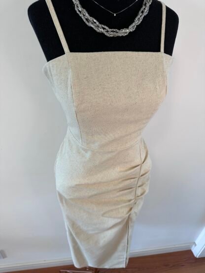 Vestido em linho. Cor bege. Veste do 36 ao 40.